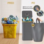 Tento odpadkový kôš sa môže pochváliť zosilnenými švami, odolnými materiálmi a esteticky sofistikovanou sivou farbou, ktorá dokonale zapadne do každého priestoru – či už ide o modernú kanceláriu alebo minimalistickú kuchyňu. Jeho kompaktný, ale priestranný dizajn umožňuje efektívne recyklovanie bez zbytočného plytvania miestom.