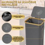 - KAPACITA 100L: Poskytuje dostatok priestoru na veľké množstvo recyklovateľného materiálu, od skla až po plast. Vnútorné vrecko umožňuje jednoduché vyberanie, čistenie a organizáciu.