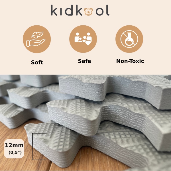 Mäkká podložka na hranie Kidkool je ideálnym riešením na vytvorenie optimálneho a bezpečného miesta na učenie a hranie vášho dieťaťa.