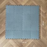30 × 30 cm penové panely. Súprava pozostáva zo 16 kusov (a 2 ďalších voľných panelov). Celková veľkosť koberca je 2,5 metra štvorcového. Môže sa používať v rôznych miestnostiach a dokonca aj vonku.
