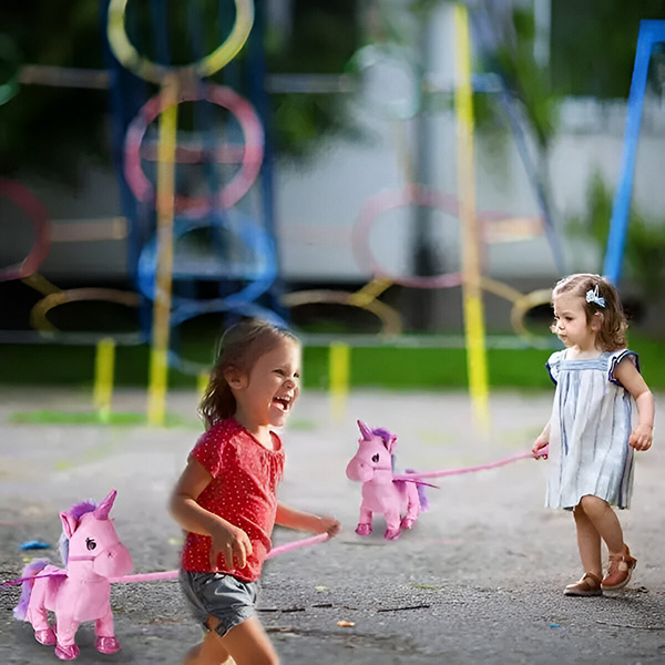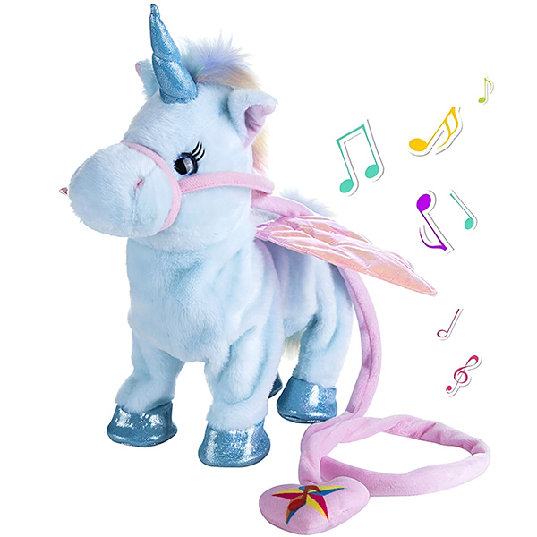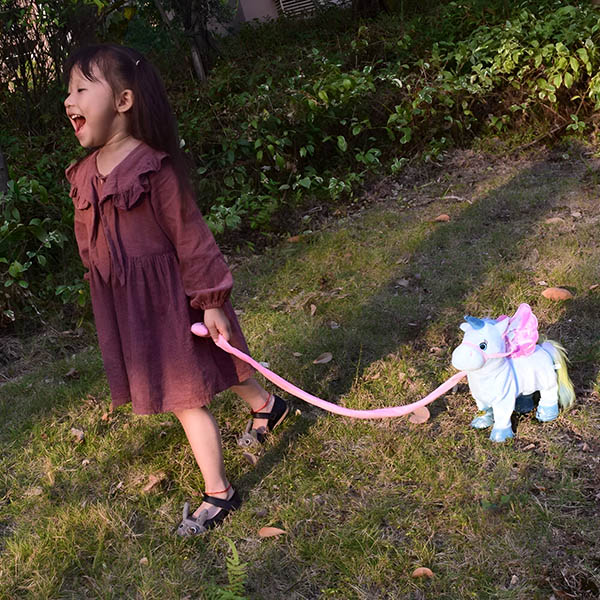 Nahraďte obyčajné hračky svojich detí týmto zábavným jednorožcom, ktorý chodí, spieva a jedným dotykom vydáva rozkošné zaerdžanie! Deti si zamilujú prepínanie medzi dvoma pesničkami, stláčanie jeho vodítka a maznanie sa s jeho mimoriadne mäkkou bavlnenou srsťou. Vychutnajte si rozžiarené tváre svojich detí, keď sa hrajú so svojím novým najlepším priateľom.