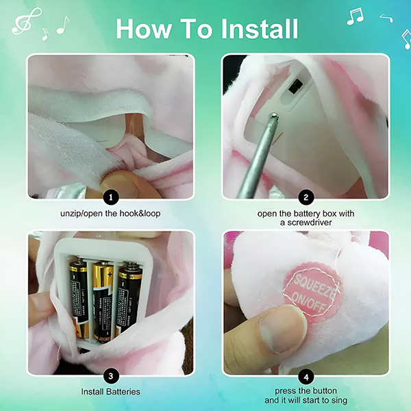 K priehradke na batérie sa ľahko dostanete cez otvor na suchý zips na zadnej strane hračky. Otočte vypínačom do polohy „ON“ a kúzlo sa môže začať. Jednorožec Roxy je vyrobený z kvalitných materiálov, je to mäkká, odolná a bezpečná hračka pre všetky deti.